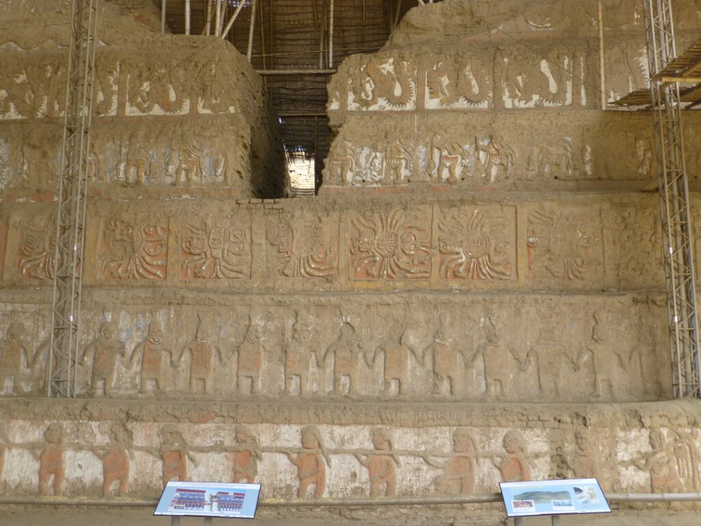 Fermo il primo taxi che passa e salgo. La macchina cade letteralmente a pezzi, ma per lo meno mi porta in centro. Lungo la strada, cambio piano: non mi va assolutamente di fare le corse e partire adesso. Resto un’altra notte a Trujillo, in quello che resta della giornata mangio con calma, riprendo la moto, vado a visitare Chan Chan e domani parto presto (sì, come no!) e vado a visitare Lambayeque e un altro museo nei pressi.