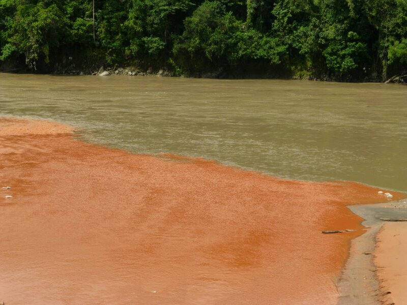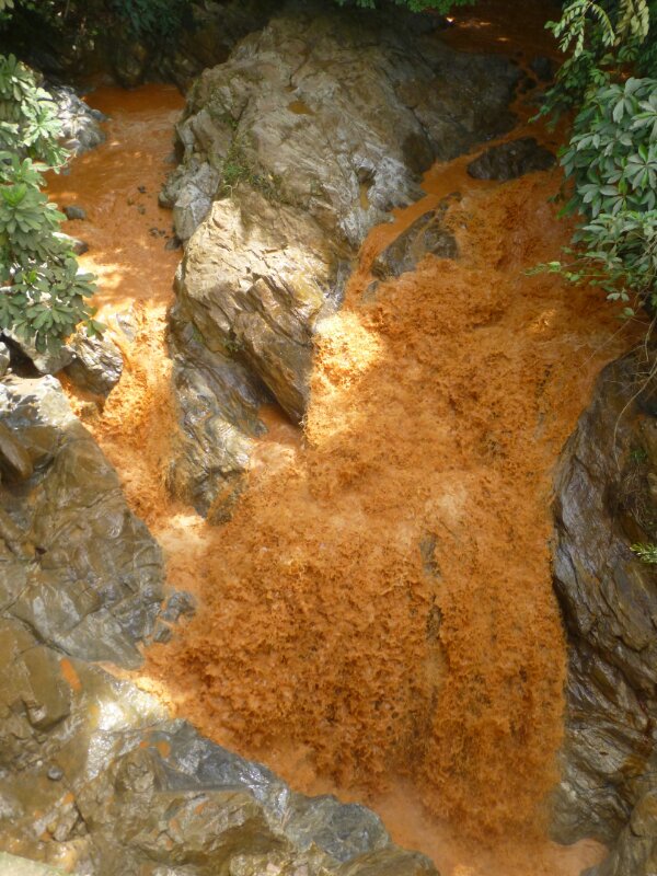 Mentre guido, con la coda dell’occhio noto un torrente rosso alla mia sinistra. L’acqua è rossa, impressionante.