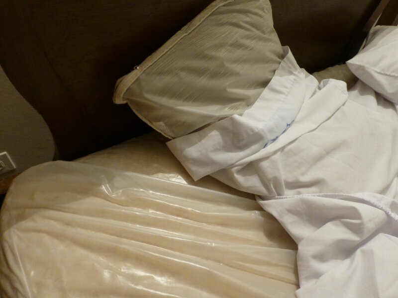 La nottata non è stat confortevole, il caldo umido appena mitigato dal grosso ventilatore puntato sul letto, unito alla plastica che copriva materasso e cuscino, certo non hanno aiutato.