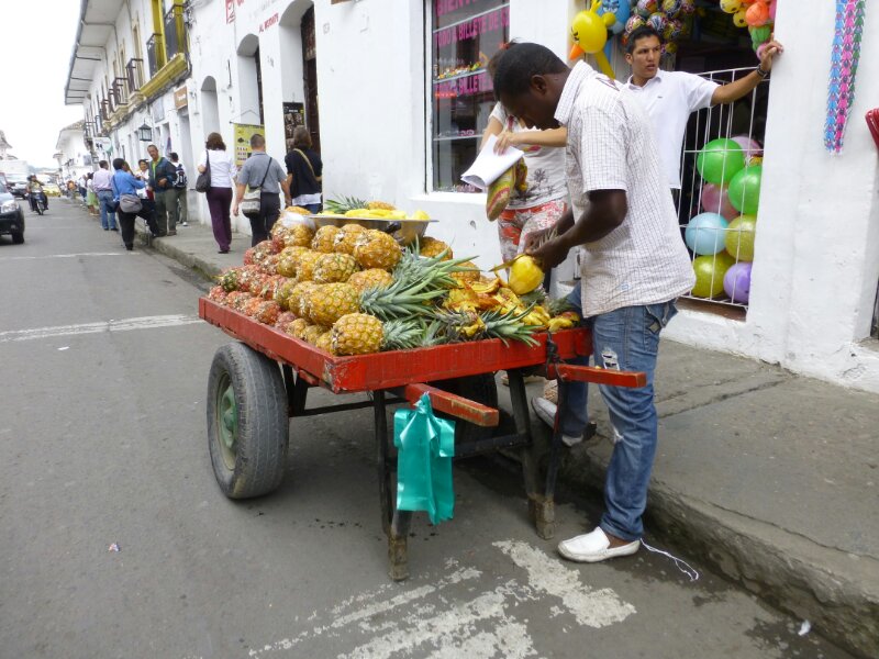 Faccio in tempo a percorrere un vicolo nel centro storico, che un poliziotto mi ferma. E’ obbligatorio indossare il casco. Tutta la Colombia non usa il casco, ma qui dentro pare sia il contrario.