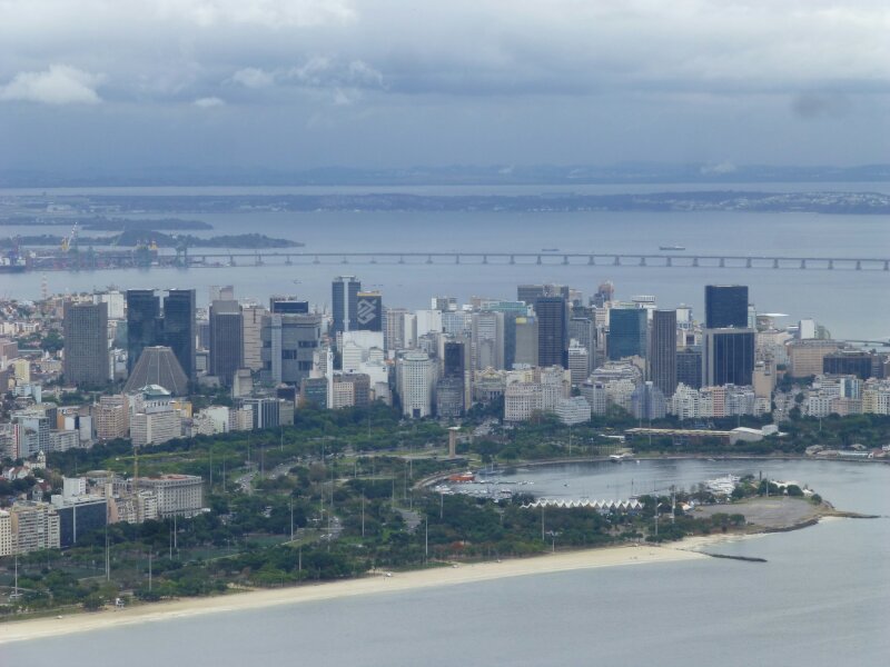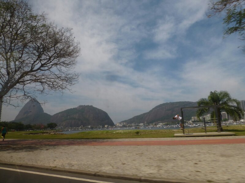 Il taxi corre a fianco della baia, le varie spiagge in cui è diviso il litorale di Rio si succedono a grande velocità.