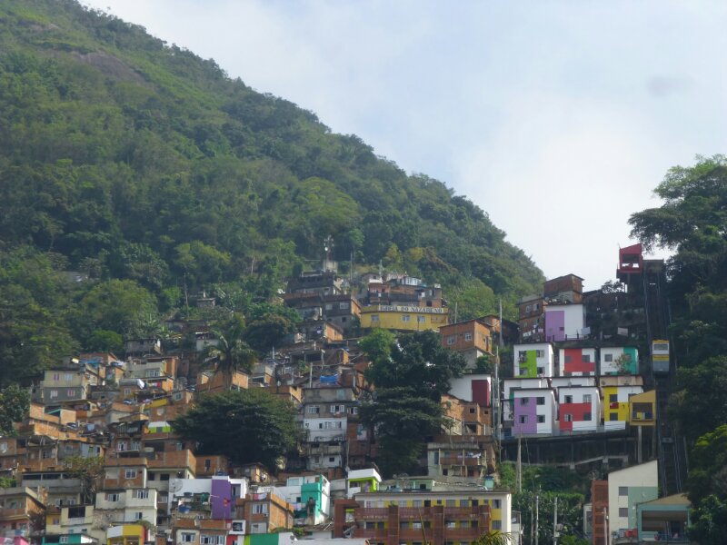 Una piccola cremagliera si inerpica sul lato destro della favela, schiacciata tra le abitazioni e gli alberi della collina. E’ stata costruita cinque anni fa ed è gratuita. Un ottimo servizio che risparmia una gran fatica quotidiana agli abitanti della parte medio-alta.
