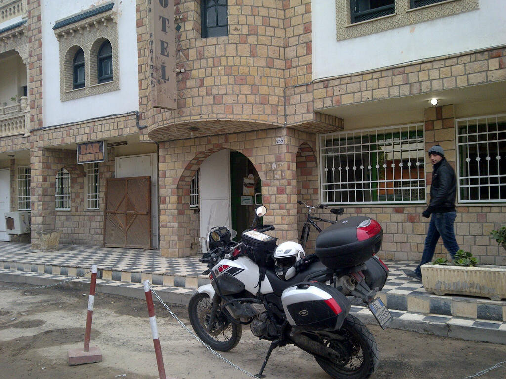 Doccia bollente, sistemo il letto e scopro che una delle coperte puzza di cane. Non l’odore della biancheria asciugata male, ma proprio di cane, come se fosse stata usata per una cuccia. La cambio, poi scendo a cenare con i motociclisti appena conosciuti in una saletta ristorante satura di fumo e assordante delle urla dei commensali, quasi tutti tunisini.