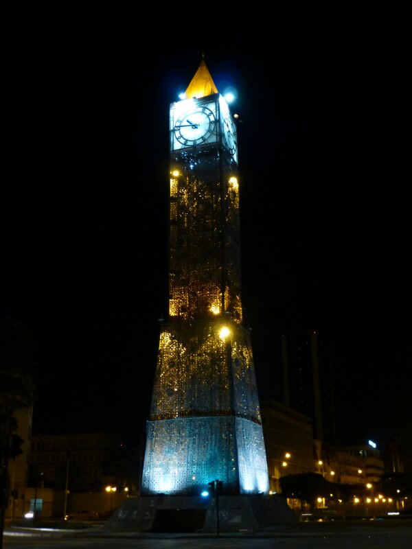 E così, eccomi nuovamente sulla spettacolare via d’accesso a Tunisi, stretta tra mare e lago, una striscia d’asfalto che corre tra le acque, con le sagome nere delle palme che si stagliano nell’oscurità e le luci della città all’orizzonte che si specchiano nelle acque.