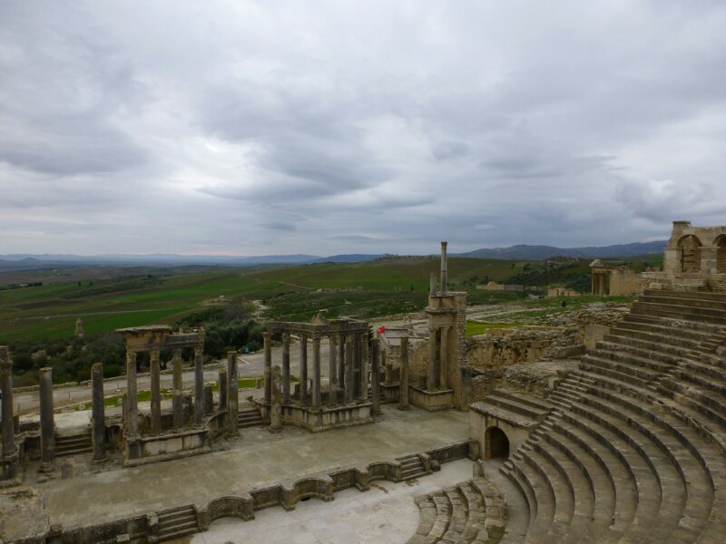 Arrivo a Dugga intorno all’una, anche oggi non si pranza! Non ci sono molti turisti, però considerando che la giornata è brutta, la stagione sbagliata e il luogo abbastanza fuori mano, direi che c’è abbastanza gente. Tra cui, ovviamente, diversi italiani, scesi tutti da una carovana di fuoristrada.