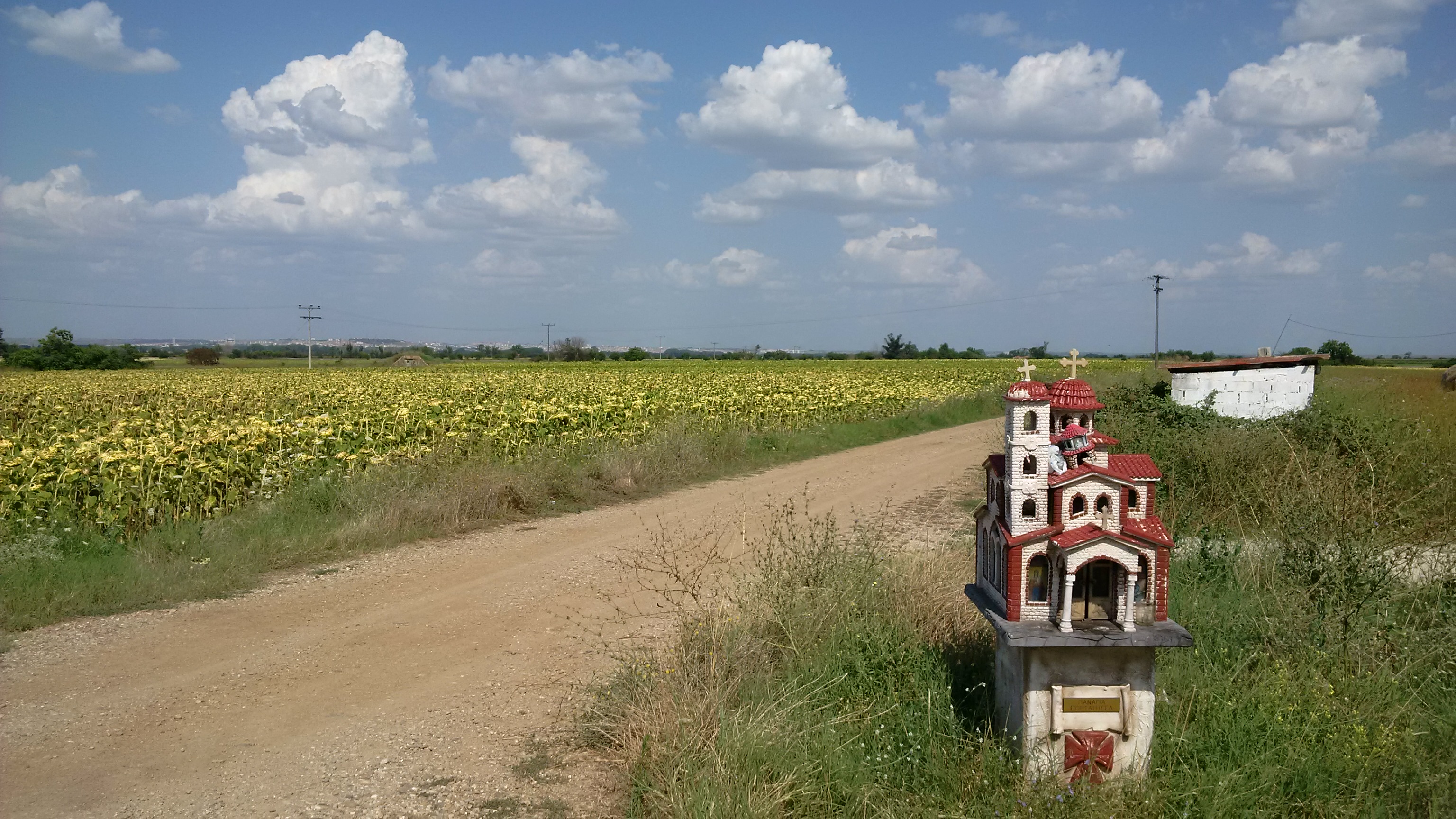 Finalmente arriva il bivio che sale lungo il confine turco per arrivare a Edirne. I paesini che attraverso sono deserti, non un’anima in giro. Chissà se é per il caldo o per il “progresso” che li ha svuotati.