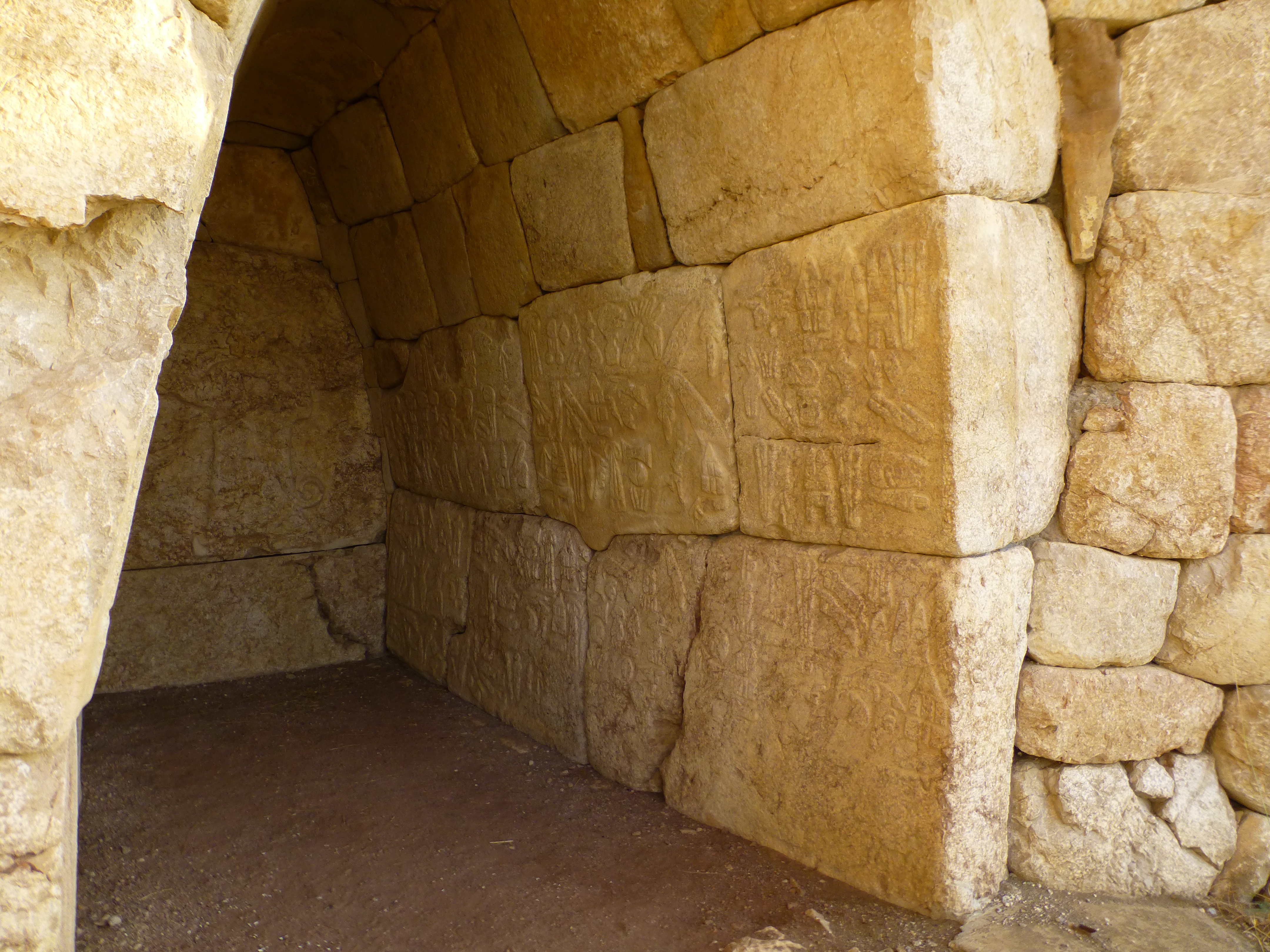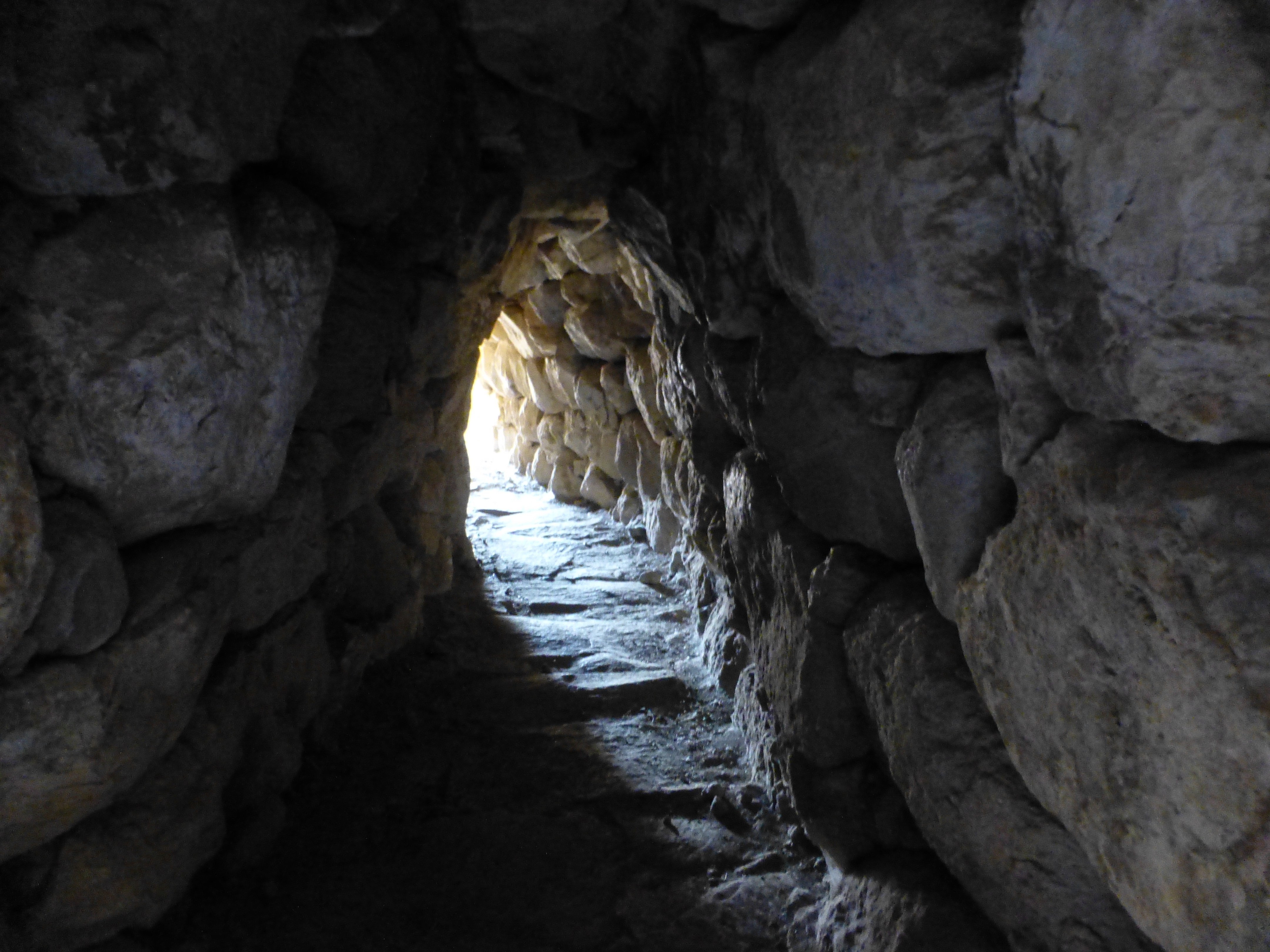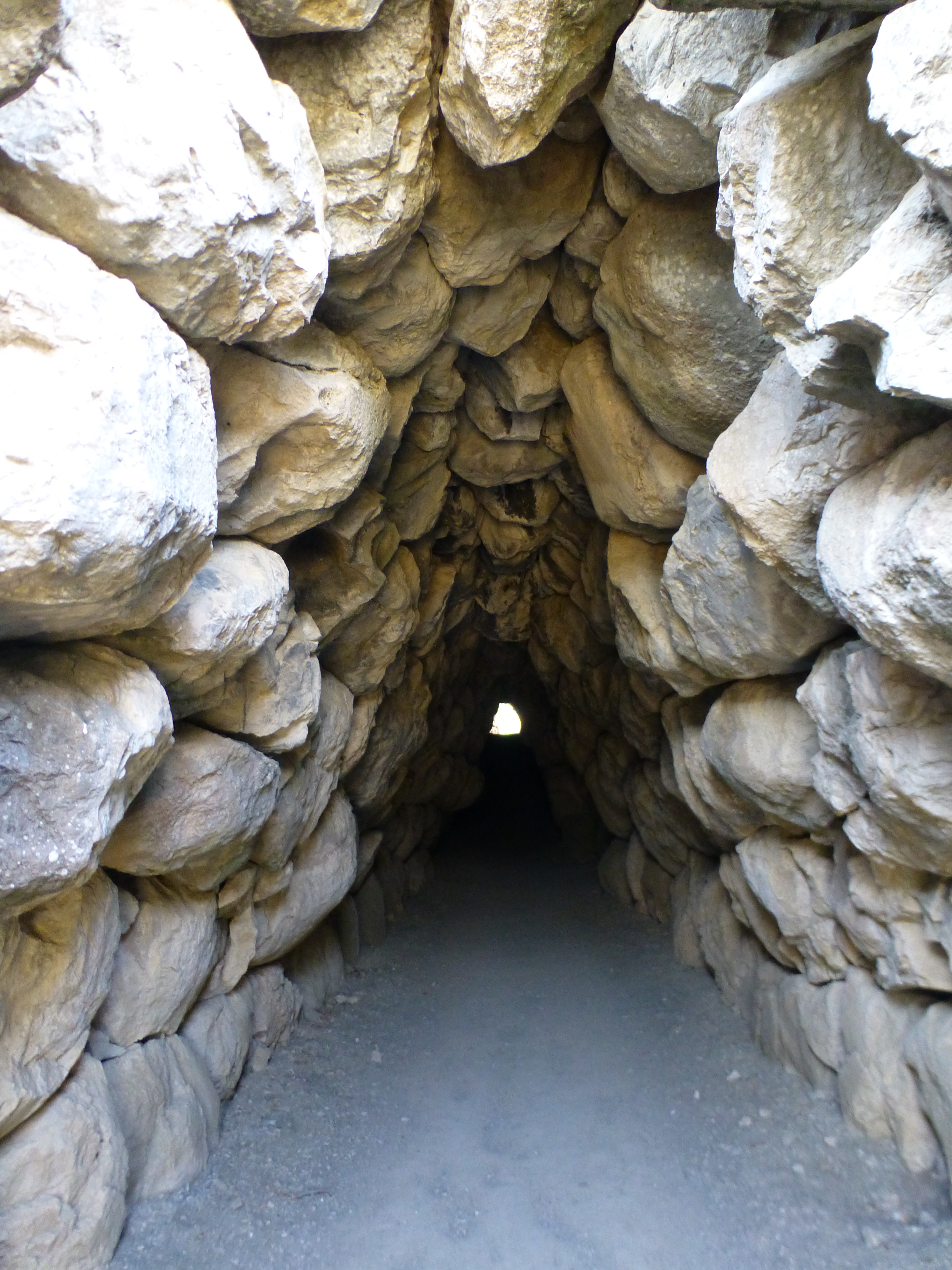 Entro in un tunnel costruito anche questo con pietre molto grandi. La tecnica di costruzione é abbastanza semplice : mettono della terra o della sabbia dove vogliono costruire il tunnel, sopra appoggiano le pietre che diventeranno le pareti e poi scavano, togliendo la sabbia.