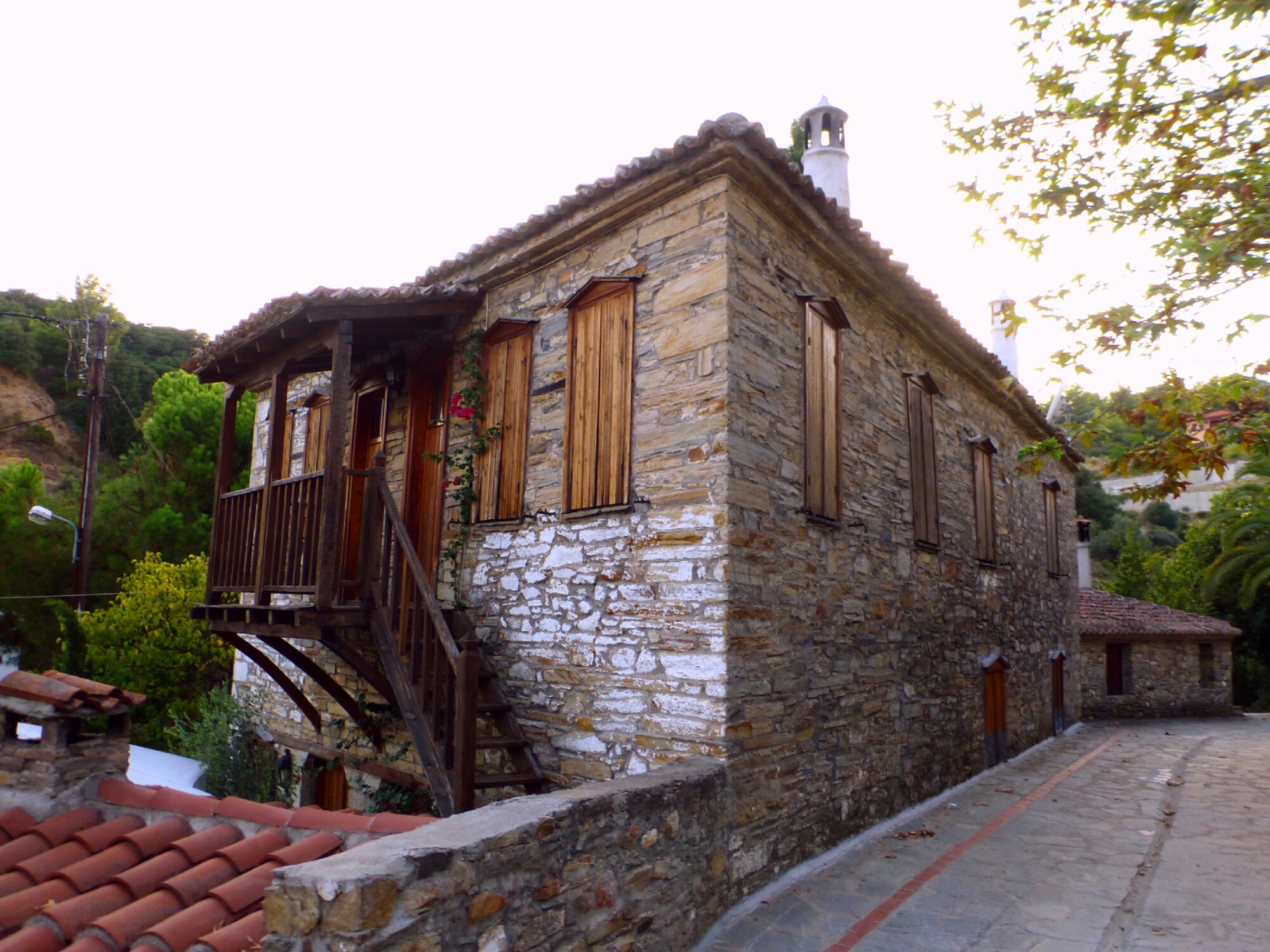 Ne approfitto comunque per fare un giro per la parte antica di Nikiti, fatta di splendide case in legno e pietra. Arriviamo fino in cima al paese, alla piccola chiesa ortodossa.