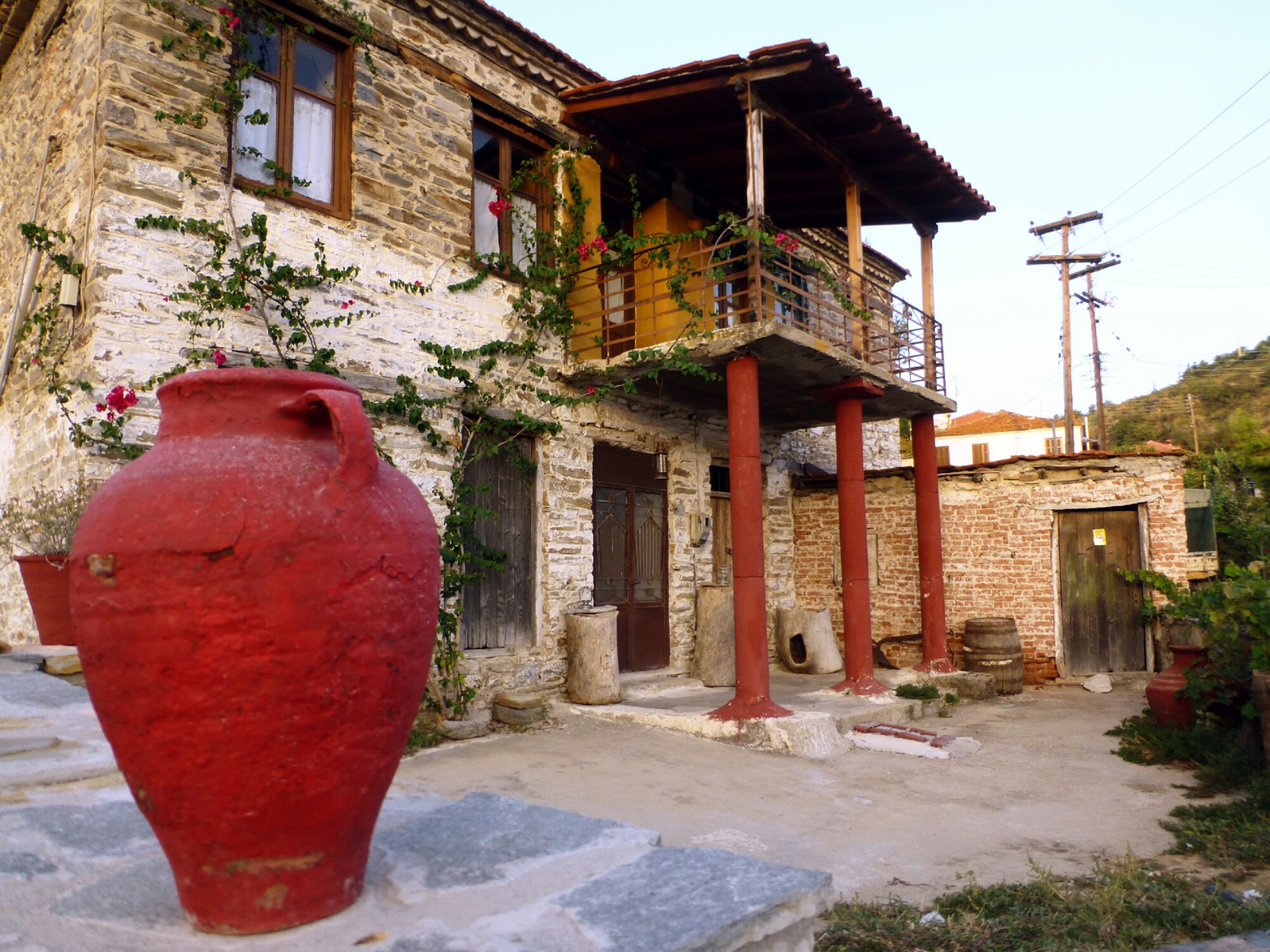 Mi spiega Costas che questa zona é stata popolata da famiglie fuggite da Trebisonda e dal nord della Turchia al tempo della guerra greco-turca. L’architettura, infatti, é molto simile.