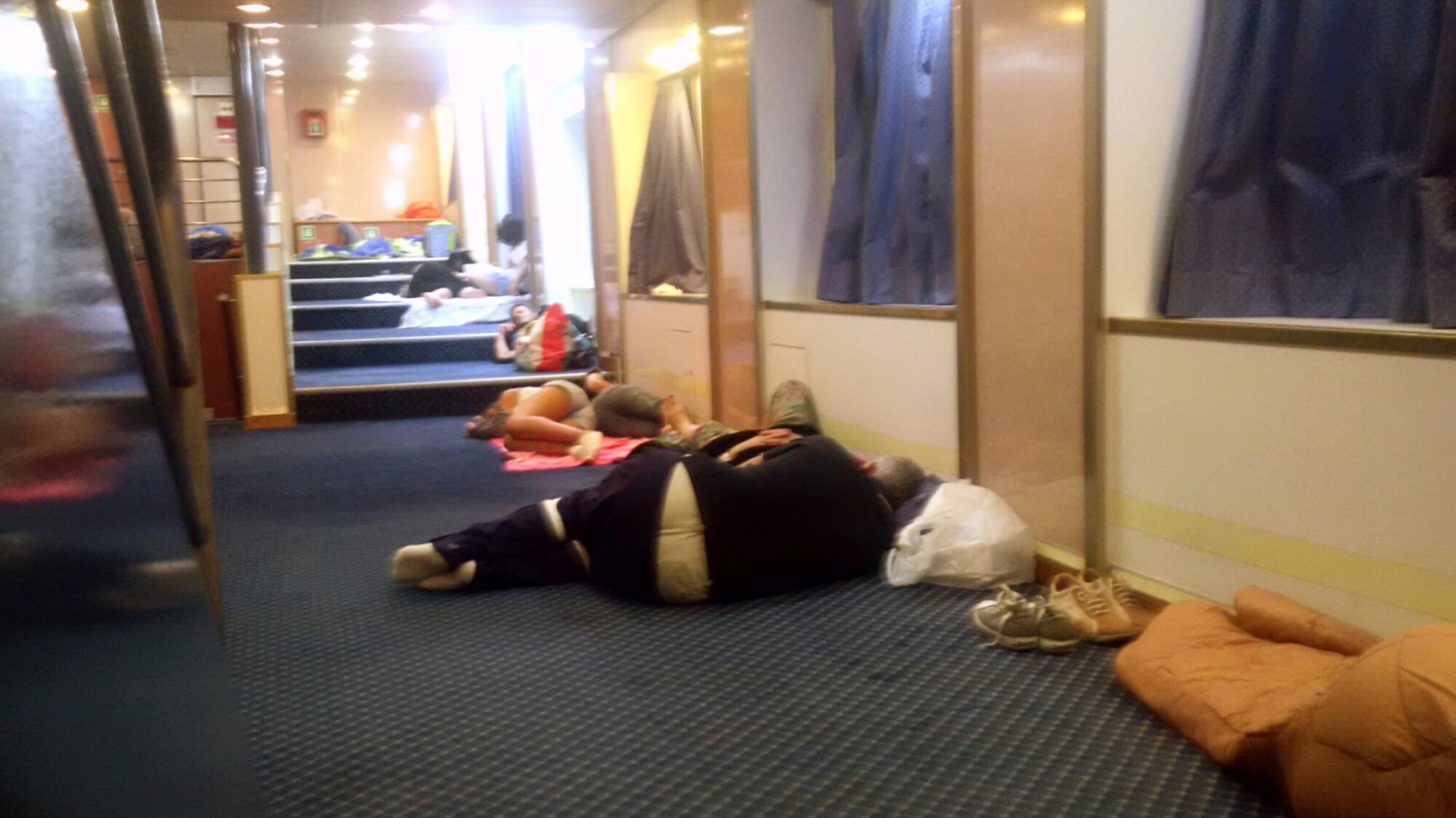 Mi accorgo che, dopo essermi addormentato, sono stato circondato da altre persone senza posto salite a bordo nel cuore della notte, molte delle quali con altri bambini piccoli che, nemmeno a dirlo, piangono e urlano in continuazione.