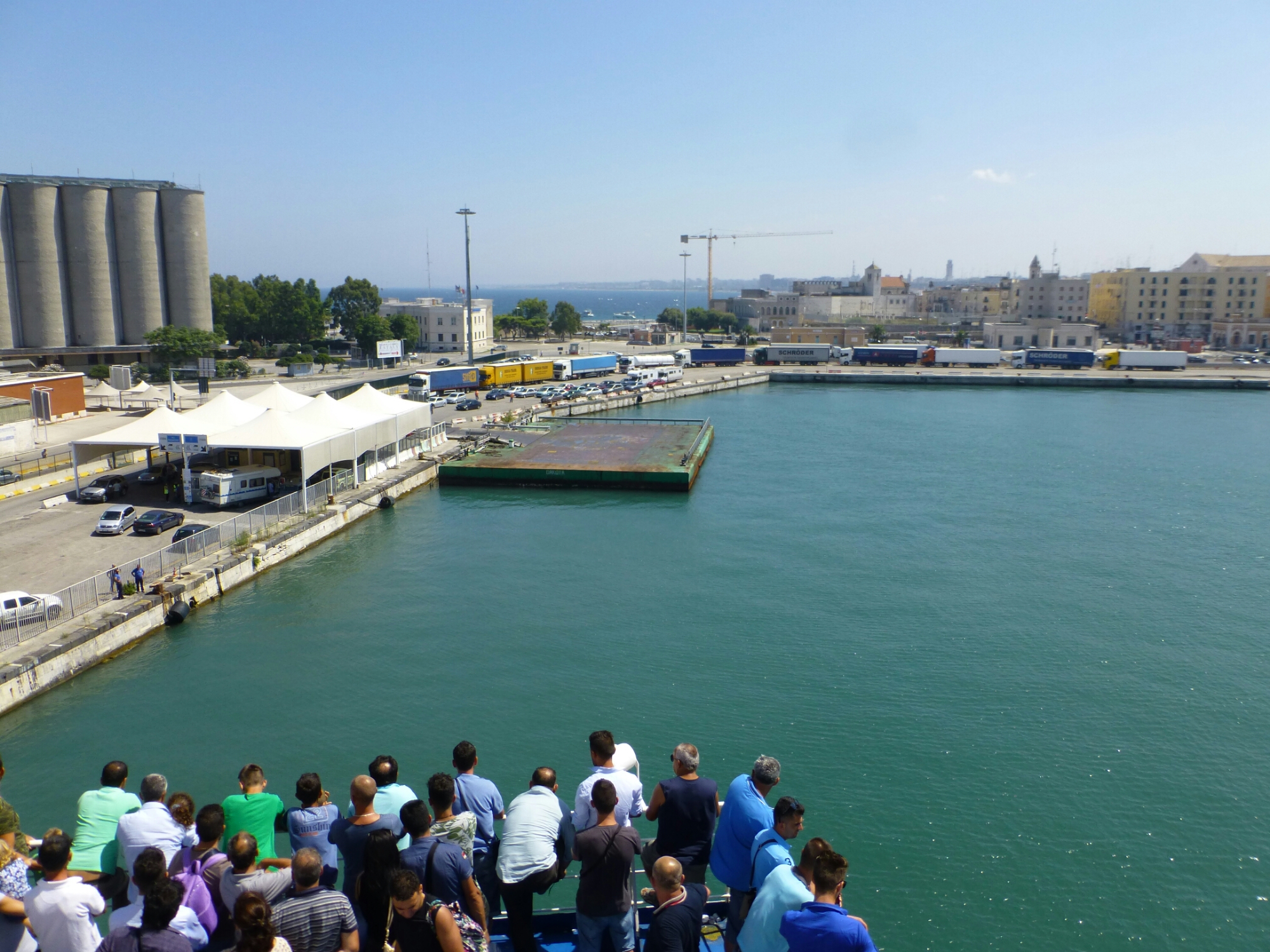 Intravedo in lontananza Bari Vecchia, per sentito dire so che è bellissima, ma purtroppo anche stavolta non riuscirò a vederla, il mio unico pensiero é scendere dalla nave e tornare a Roma il prima possibile, sono distrutto.