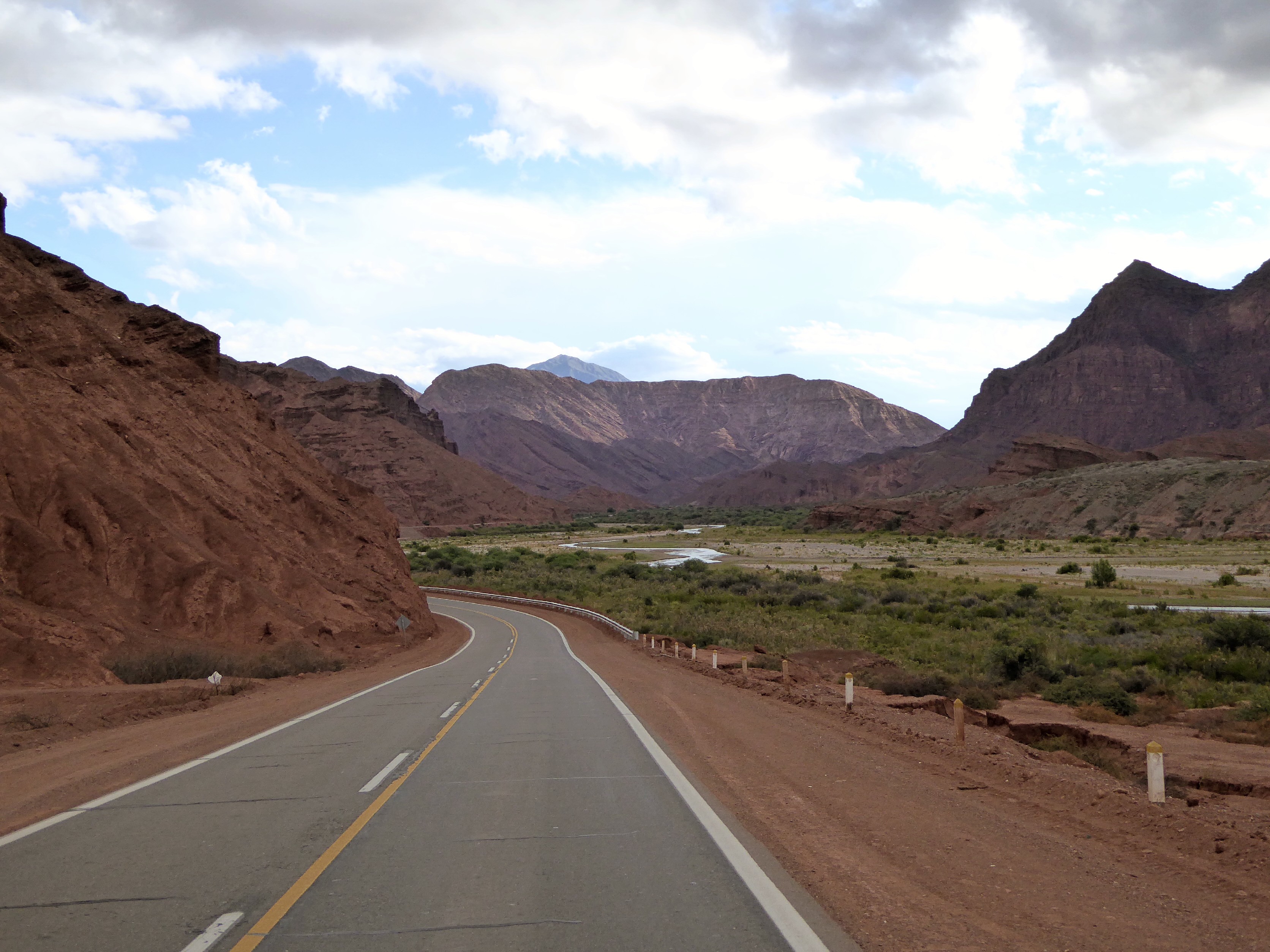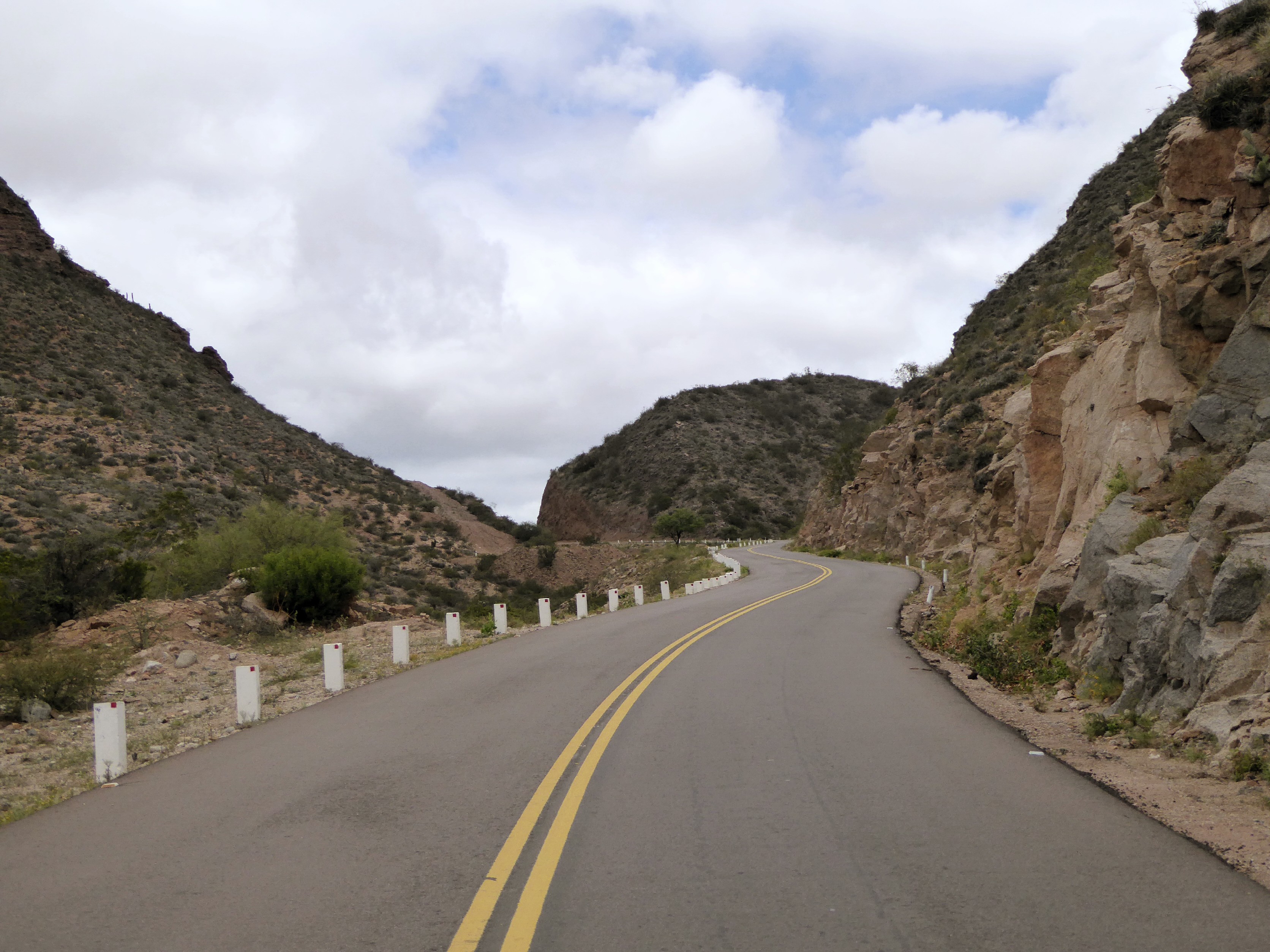Anche oggi la strada segue un’ampia gola, i picchi attorno a me sono molto alti, imponenti.