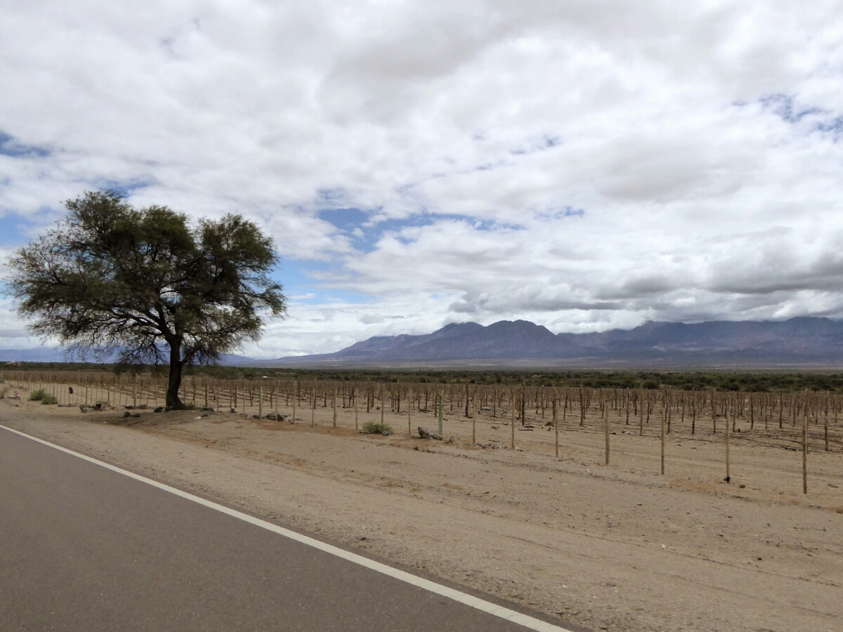 Esco da San Juan abbastanza presto, dopo un paio d’ore raggiungo Mendoza, frenato da un vento in direzione ostinata e contraria, come canterebbe De André.