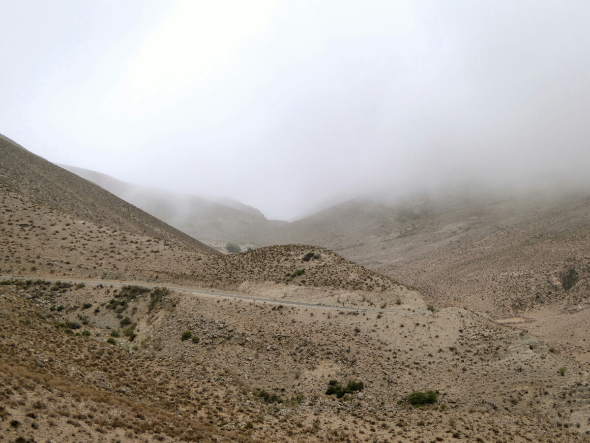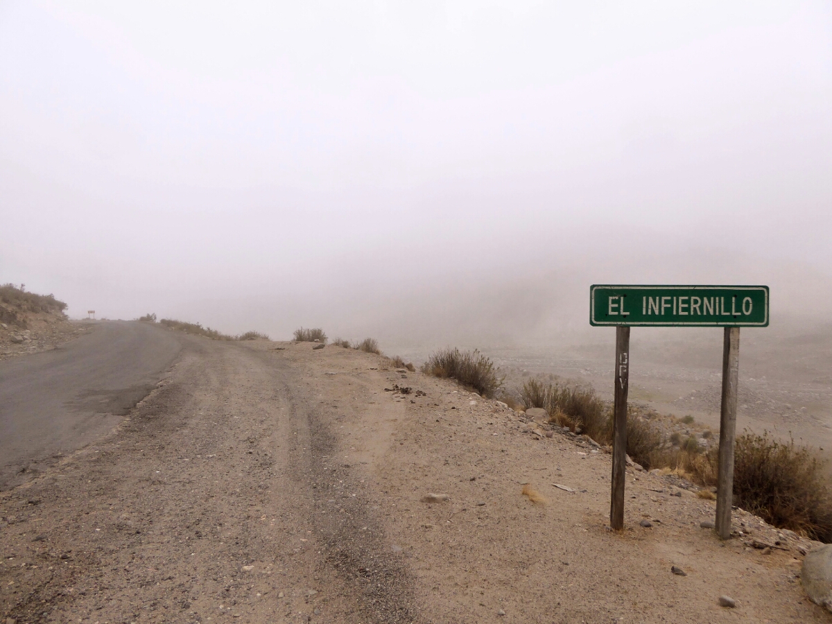 La strada dal lato cileno é un ripido groviglio di tornanti che si susseguono a pochi metri l’uno dall’altro, suggestivo.