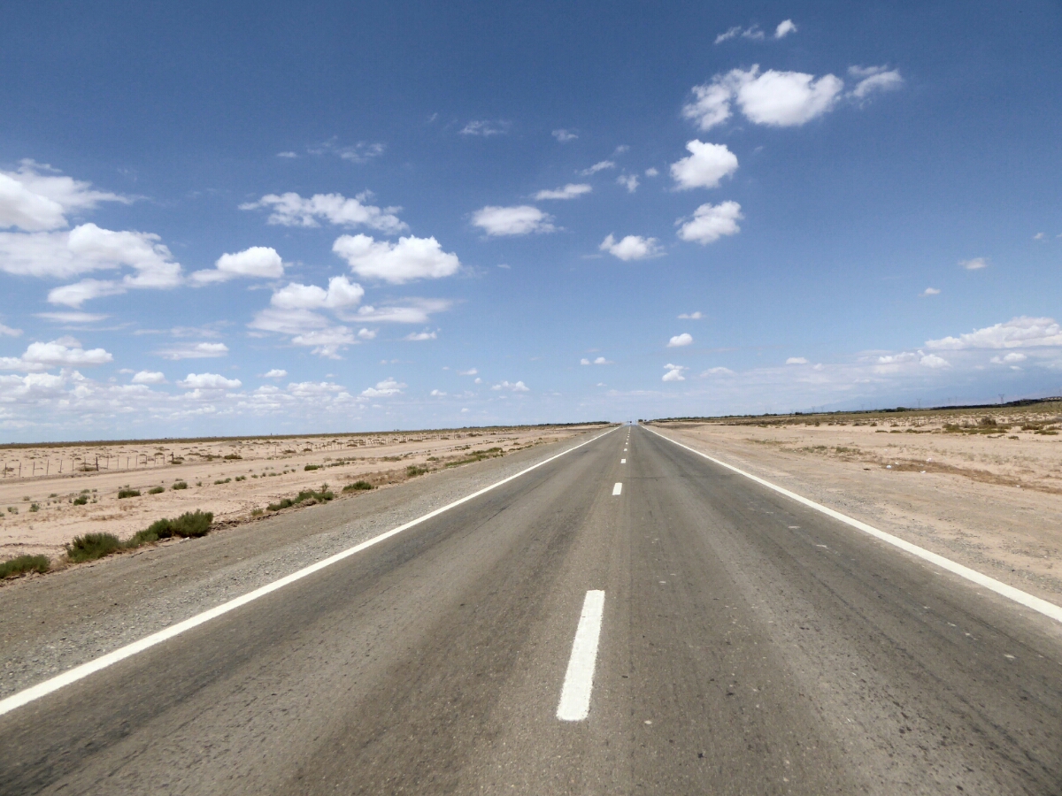 Dopo Mendoza, la strada diventa un lungo rettifilo che taglia in due il deserto.