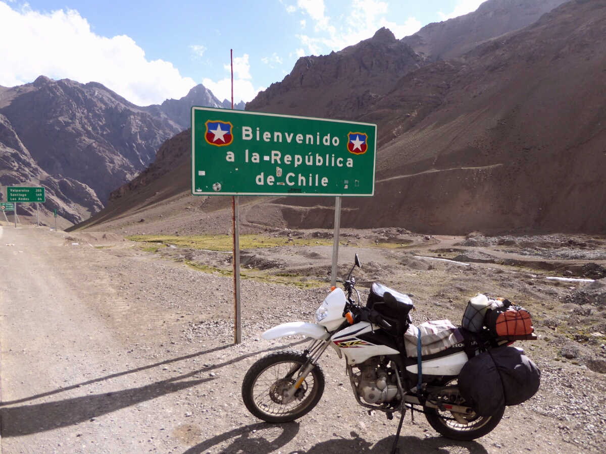 Arrivo in cima al passo, imbocco un lungo tunnel. All’uscita un cartello mi dà il benvenuto in Cile.