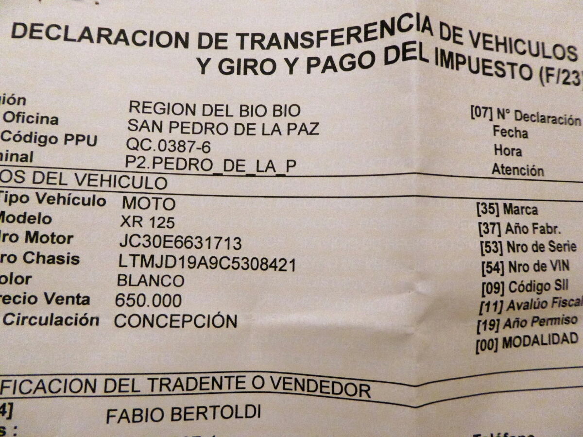 Vado a prendere il pile dalla moto. Quando rientro, incrocio il tipo di prima che,con gli occhi felici, mi dice che é stata una fortuna che la moto fosse cilena, altrimenti me l’avrebbero sequestrata direttamente, senza possibilità di appello.